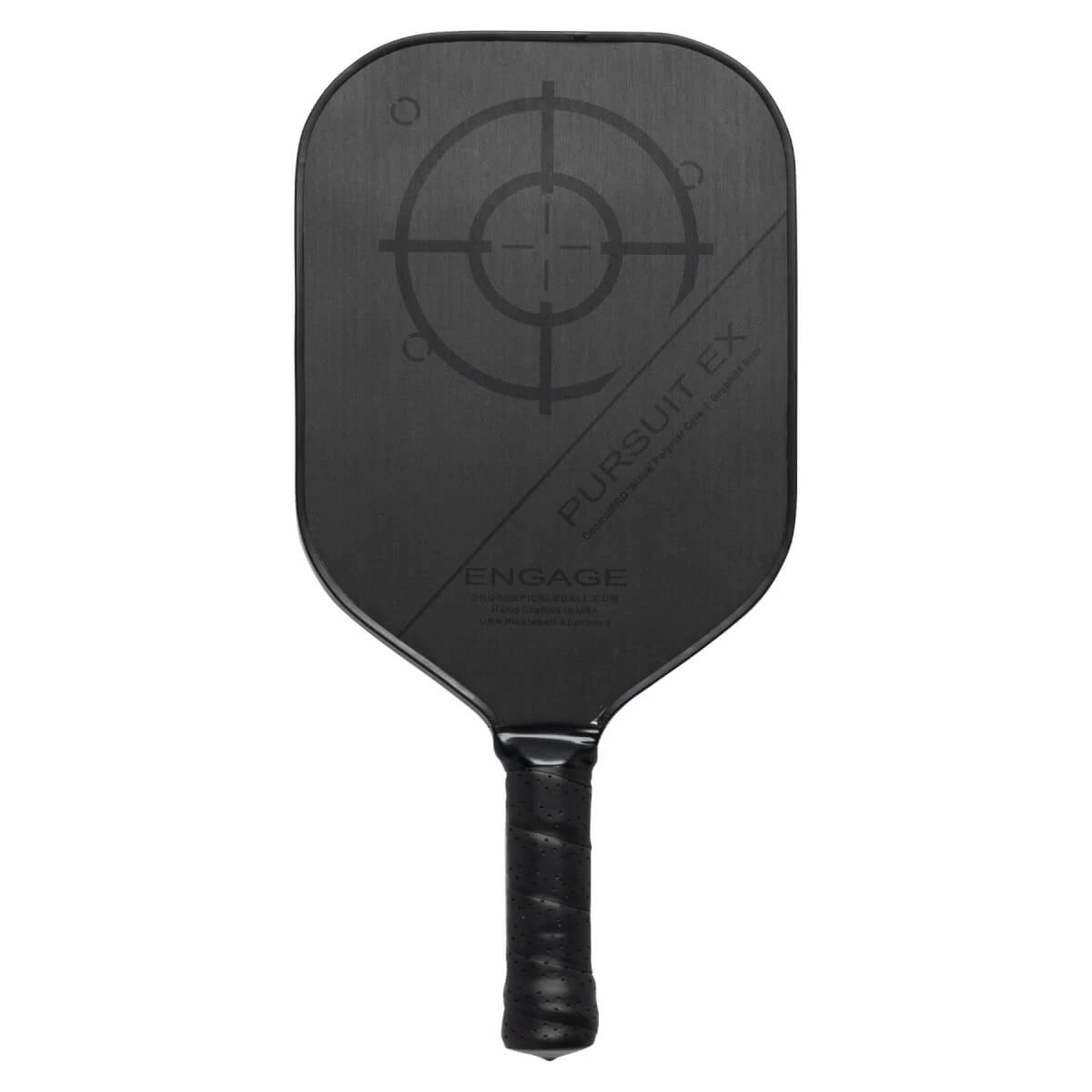 The Pursuit EX is the first graphite paddle released by Engage and is available in two different core thicknesses. The graphite face is developed specifically for the paddle to work with their black core, which is developed to be the softest core on the market. The graphite face features a rough texture that is built to last since it is a part of the paddle face/skin and not an overlaying texture. The graphite face is designed to increase friction and allow the ball to stay on the paddle longer. The combination of the black core and the graphite face give this paddle unmatched control, spin, and feel.