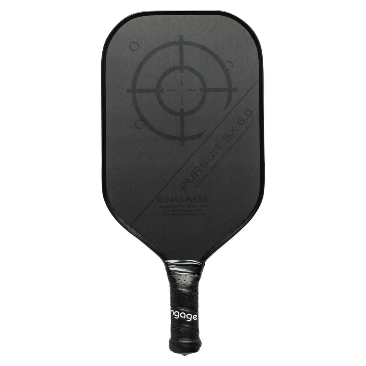 A slightly elongated pickleball paddle at 16 1/4” in length and 7 3/4” in width, the Engage Pursuit SX 6.0 Thick Core Middleweight Graphite Pickleball Paddle is designed with an experienced player in mind. Designed for a player who loves to put your index finger on the paddle or making the transition from table tennis. Paired with a gritty pickleball paddle face surface the Engage Pursuit SX 6.0 Thick Core Middleweight Graphite Pickleball Paddle is great for all players, specifically ones who tend to excel at the net. The thick core will give a player more control and feel without sacrificing power for an all-around performance pickleball paddle. A thick core pickleball paddle for the most control and feel on the court. This model will feature a lightweight design for one of the most all-around on without sacrificing the power needed. The Pursuit paddle face is a proprietary graphite face developed for this paddle to work with Engage’s ‘black’ core developed to be the softest core in the pickleball paddle market.ย The combination of this skin and core makes this paddle unique and the most responsive pickleball paddle on the market.
