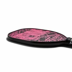 The React features a unique core that is polypropylene combined with Nomex inserts, called Fusion Core Technology. The combination of the two most common core materials delivers control around the edge of the paddle while providing power in the sweet spot. The hitting surface is graphite, which gives this paddle speed, pop, and maneuverability. The 8.3 width of the pickleball paddle gives it a wide body shape for a larger sweet spot.
