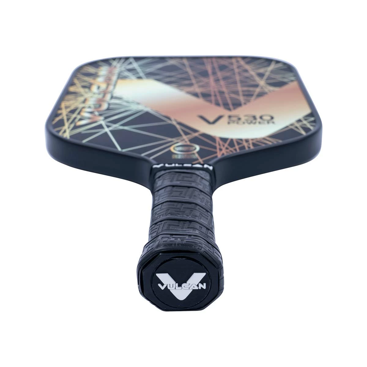 Theย Vulcan 530 Heavyweight Carbon Fiber Pickleball Paddle is the ultimate power paddle! It’s designed for players who hit backline drives and smashes with enormous pace and depth. Tennis player moving to pickleball and wanting that same response? Grab a Vulcan 530 Heavyweight Carbon Fiber Pickleball Paddle and bring that power to the pickleball court. The Vulcan 530 Heavyweight Carbon Fiber Pickleball Paddle will have a maximum sweet spot area makes this a highly forgiving paddle at the net. Theย Vulcan 530 Heavyweight Carbon Fiber Pickleball Paddle will feature the Vulcan Classic Shape, with a wide-body 16mm polypropylene core with carbon fiber V-Skin surface and inserts. Vulcan Max Control Grip at 4-3/8โ. The Vulcan 530 Heavyweight Carbon Fiber Pickleball Paddle is made to 8.5 oz. Standard Weight. Available in Gold Lazer, Navy Lazer, Black Lazer, and Rainbow Lazer design! From Click To Court! With Fast and Free Shipping!