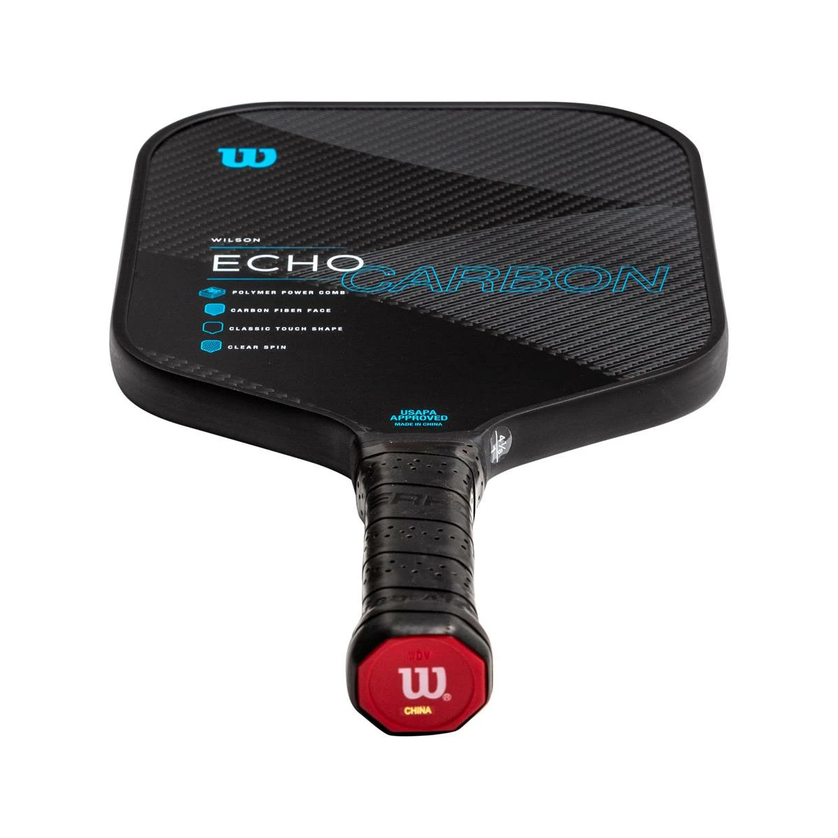 The Wilson Echo Carbon Heavyweight Carbon Fiber Pickleball Paddle is the ultimate feel pickleball paddle! Dominate the kitchen line with the Wilson Echo Carbon Heavyweight Carbon Fiber Pickleball Paddle!